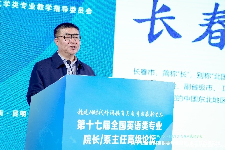 4月11日—14日,第十七届全国英语类专业院长/系主任高级论坛在昆明举办。本次论坛由教育部高等学校外国语言文学类专业教学指导委员会、云南大学、上海外国语大学共同主办,论坛主题为“构建AI时代外语教育高质量发展新生态”,设主旨演讲、专题报告、平行论坛三大模块,教育部高等学校外国语言文学类专业教指委主任委员孙有中教授、上海外国语大学副校长查明建教授、云南大学副校长吴涧教授、上海外语教育出版社社长孙玉等来自全国70余所高校的英语专业院长/系主任和相关代表800余人出席。
