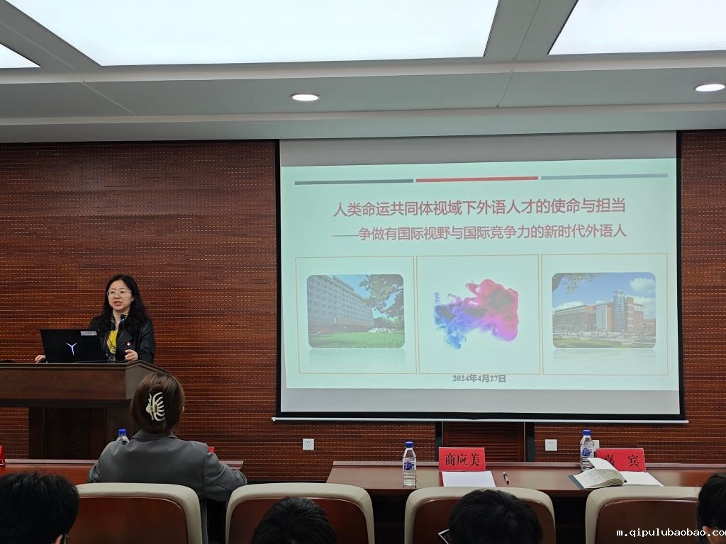 为全面贯彻落实学校和学院党纪学习教育工作。4月27日,1946伟德国际源自英国始于1946党委书记商应美教授为学院学生党员和学生骨干做了题为“人类命运共同体视域下外语人才的使命与担当——争做有国际视野与国际竞争力的新时代外语人”的主题党课。