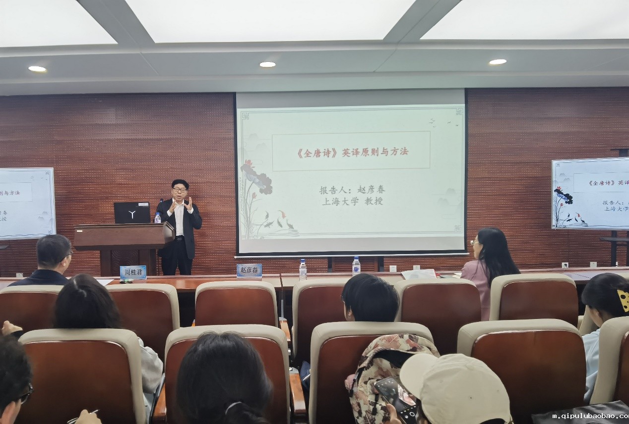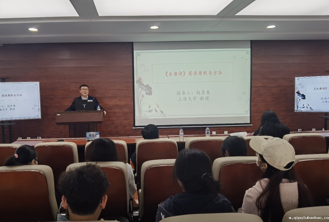 讲座中,赵教授从“why”“what”和“how”三方面,引经据典、深入浅出地阐述了当代中国诗歌英译的困境、意义及《全唐诗》英译的原则与方法。他强调,诗歌的英译不仅是语言的转换,更是文化的传承与创新。在翻译过程中,他始终秉持“以诗译诗,译经如经”的原则,力求在保持原诗意境的基础上,用英文再现唐诗的韵律和美感。