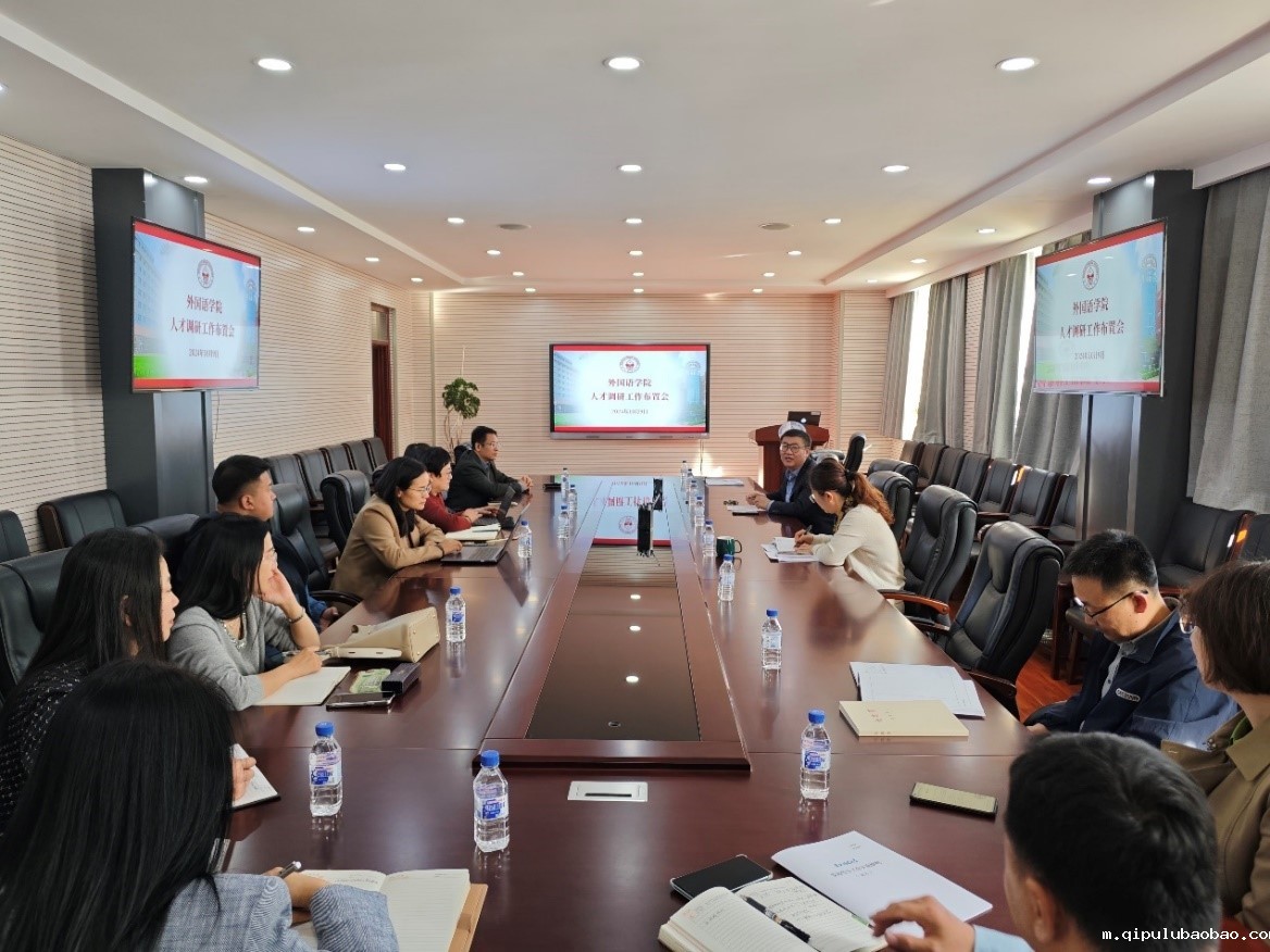 会上,周桂君院长传达了学校人才工作会议精神并详细解读学校人才强校战略,在客观分析学院师资队伍存在问题的基础上,强调学院接续发展要立足人才、依靠人才,要将人才工作放到学院发展的战略高度,举全院之力、动员全员行动,为学院的不断发展提供动力;接着,周院长对调研工作做了具体部署与要求,特别强调此次调研的内容,此次调研共涉及8个维度的20余项内容,涵盖学院师资队伍建设、人才培养举措、大学外语改革、非通用语种招生、基层党建等工作;最后,商应美书记做了总结发言,商书记结合学院院情分析报告,谈到当前制约学院发展的几个核心瓶颈问题,并对此次大调研工作做了进一步要求。商书记谈到,此次调研规模之大、范围之广、内容之多、学校重视程度之高都属首次,各位调研组组长务必以高度的责任感和使命感,切实将其他高校优秀做法、举措调研详尽,调研结束后形成高质量的调研报告,在学院召开专题汇报会进行分享,切实将调研成果转化为推动学院事业发展的实际成效。