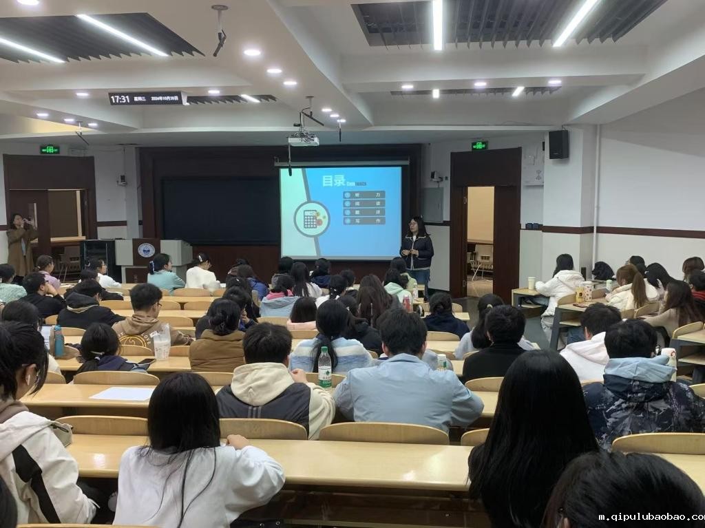吴瑕老师多年追踪大学外语四级出题趋势,针对四级听、说、读、写、译五种题型总结提炼出应试答题技巧,为同学送上四级备考指南。讲座现场座无虚席。会后同学们纷纷上台与老师进一步交流备考经验及英语学习规划,最后吴老师代表全体任课教师预祝同学们取得优异成绩。