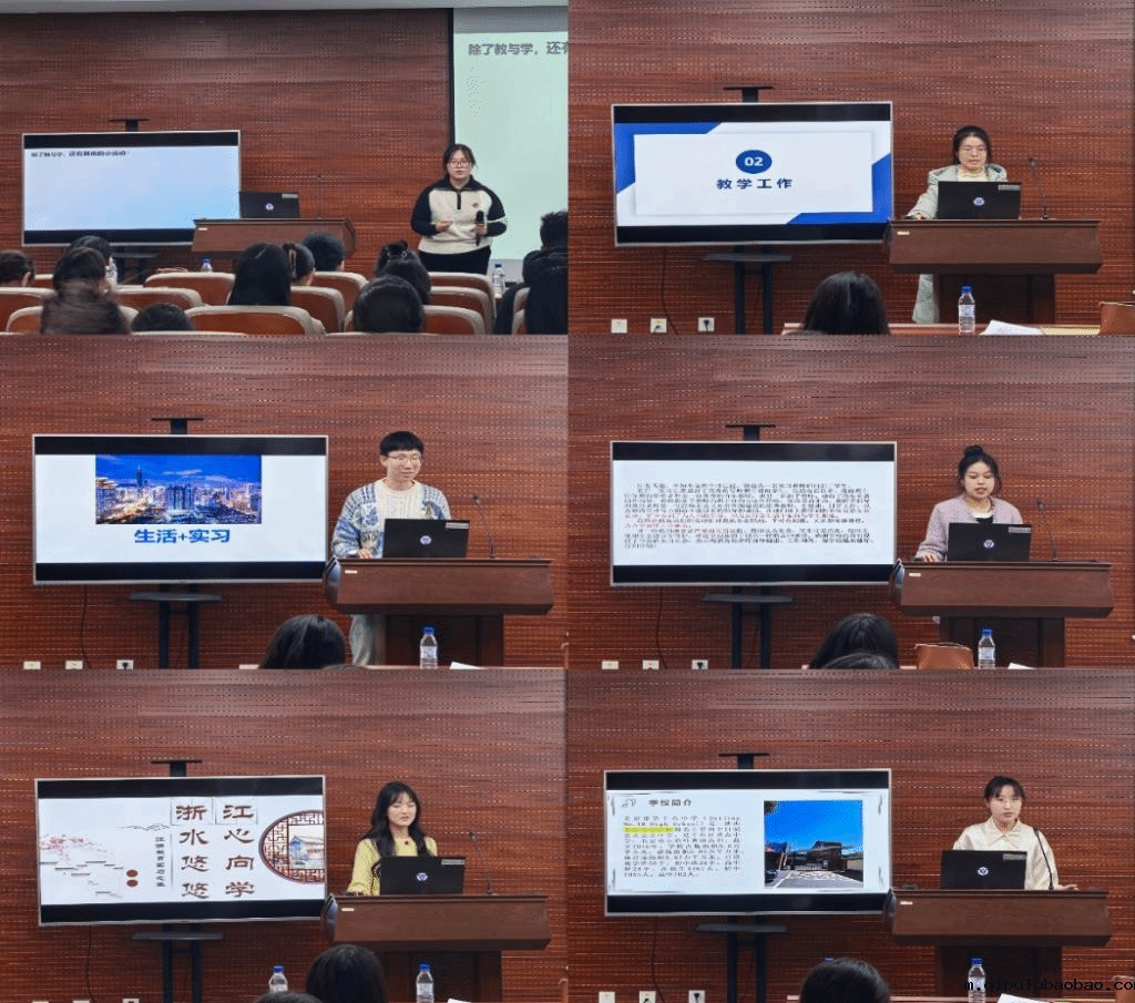 接下来,进行本次大会优秀实习生评选环节,共有6名同学报名参与此次评选。试讲过程中,各位同学激情饱满,在充分理解教学内容的基础上,结合自身特点和教学需求,展示了内容丰富多彩,形式新颖多样的课程,充分体现了他们扎实的专业知识和积极的精神风貌。