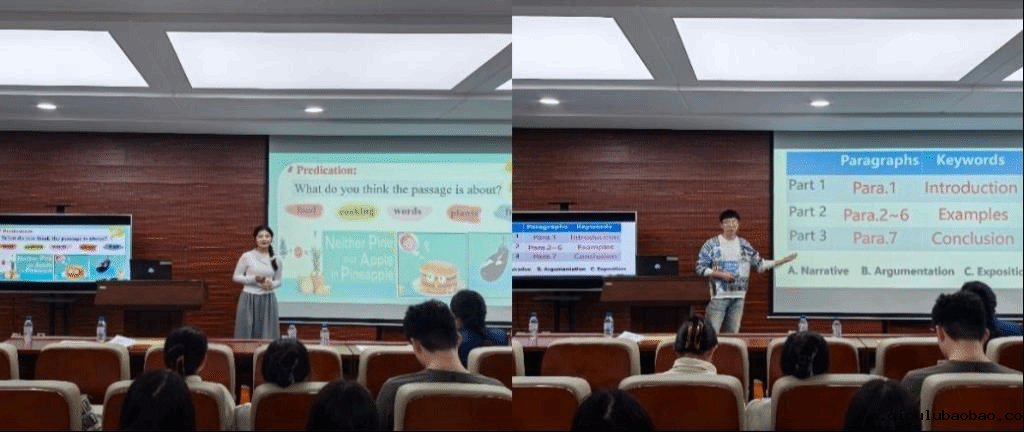 随后,外语教育与研究中心副主任徐文秀老师、卢丹老师分别对实习生汇报及试讲进行了点评。徐老师高度评价了实习生的表现,同时,徐老师也对即将踏上工作岗位的实习生们寄予厚望,希望大家不断提升自我以实现个人职业发展和为学生提供更高质量的教育。另外,卢老师对6位同学的试讲进行了细致点评。卢老师表示,同学们经历两个月的实习教育教学能力得到了很大提升,并鼓励同学们继续深化教学技能,积极反思。