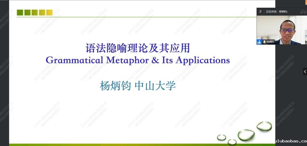 11月30日晚,中山大学博士生导师杨炳钧教授应邀作客“东师外语致知讲坛”第一百一十一讲,在腾讯会议平台为我院师生带来了一场题为“语法隐喻理论及其应用”的学术讲座。本次讲座由我院曲英梅教授主持,我院高国翠教授及部分师生参与了本次讲座。