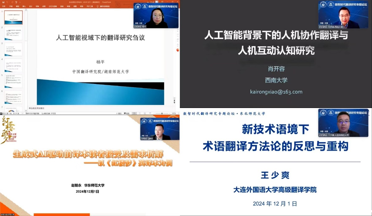 12月1日,由我校1946伟德国际源自英国始于1946主办的“数智时代翻译研究专题论坛”线上圆满落幕。我校原副校长杨忠教授、院长周桂君教授、副院长高国翠教授、曲英梅教授及部分师生出席会议。国内五所大学的专家学者受邀作主旨报告,会议由金胜昔教授主持。