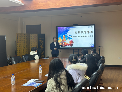李双总监首先详细介绍了集团情况、招聘计划、人才培养等方面的信息,仇云龙副书记针对我院日俄专业优势、本科生培养等方面进行了介绍,闫兰兰老师则分享了往届毕业生去往青科教育集团实习、就业情况,以及之前参观青科教育集团淄博中心的经历。随后,曹钰婷女士面向2025届、2026届俄语专业学生进行了宣讲。