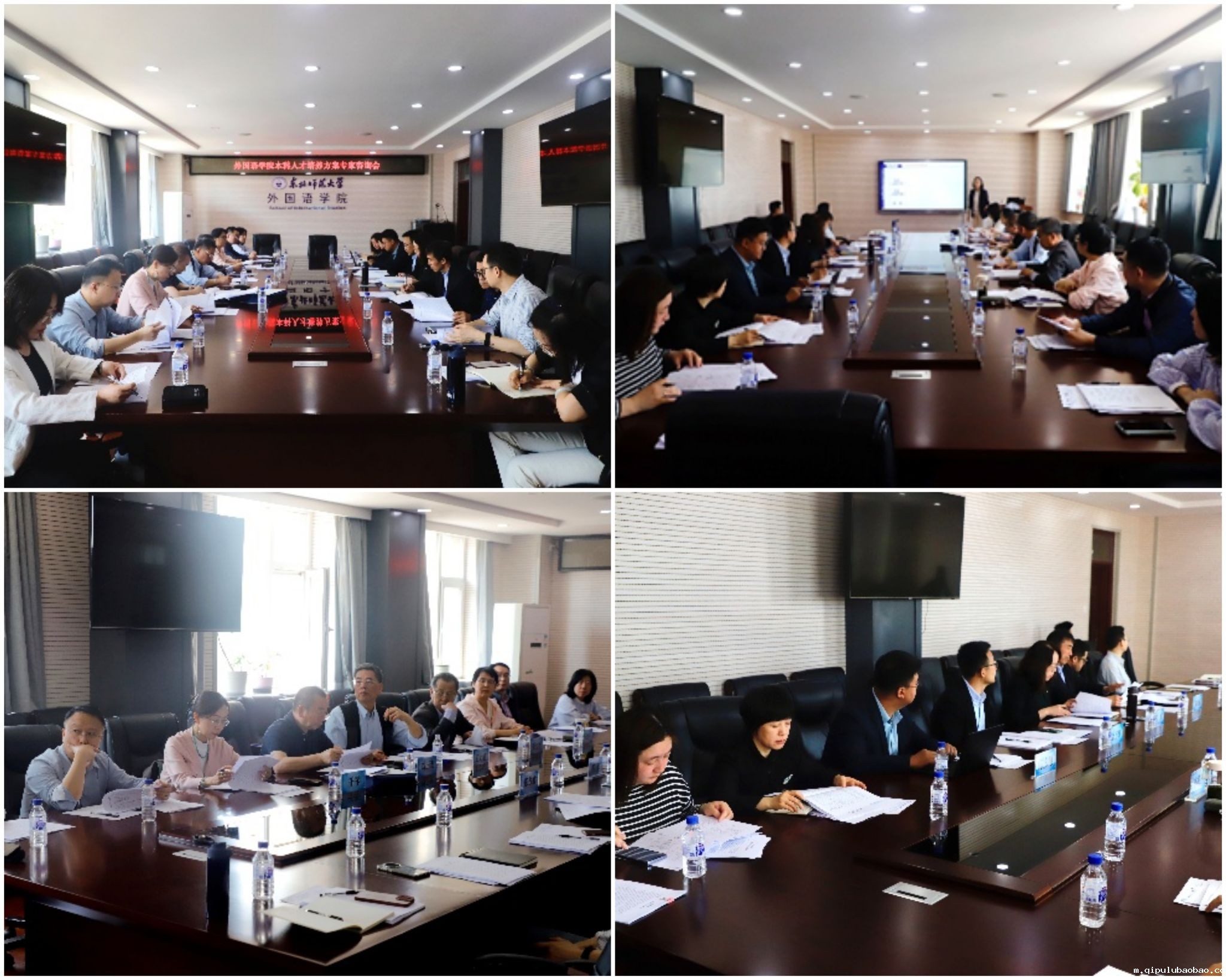 首轮研讨会由高瑛院长主持,负责教学和学生工作的副院长、督学及各系室中心主任参加了会议。高瑛院长结合学校本轮培养方案修订的指导精神和培养方案外审专家的反馈意见和建议,综合我院各专业的现实情况,指出本次修订将以“强化专业内涵、突出复合特色”为目标,在夯实语言文学基础的同时,增强跨学科融合能力。经过充分研讨,与会者达成共识,本轮培养方案修订将压缩技能实践类课程学分、增加专业内涵课程比重;在培养方案原来语言和文学模块基础上,增设国别区域研究模块以实现外语专业复合型人才培养的整体思路。与会者针对各专业培养方案具体课程设置,现场进行了优化调整,包括删除部分技能课程、调整部分课程所属模块、更新课程名称、调整学分学时分配等,确保课程体系更加科学合理。