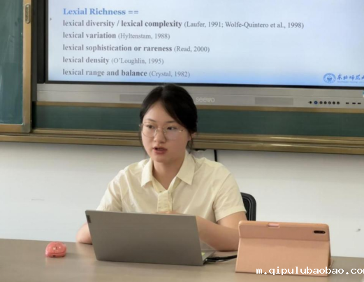 闫斯琦是2025年应届硕士毕业生,就读于外语教育专业,硕士论文题目为《初中生词汇丰富性口笔语发展特征的比较研究》。在本科期间,她连续四年获得学业奖学金和多项荣誉称号。论坛中,闫斯琦同学以《初中生词汇丰富性口笔语发展特征比较》为题,系统分析了初中生词汇丰富性在口语与书面语中的发展规律与差异特征,深入探讨口笔语发展差异的内在成因,提出提升词汇教学效能的具体建议。